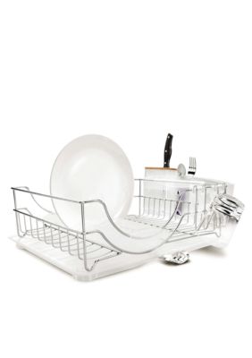 Take up minimal counter space, and hold your wet items. 4.6 out of 5 stars with 175 ratings. Simplehuman simplehuman® stainless steel frame dish rack in grey. That's probably not true, but a steel dish rack designed with features including an extended dish tray, and integrated cup holders can make the task a little more organized. It has a swivel spout that pivots so you can drain water directly into the sink, and it also can be removed for easy cleaning.