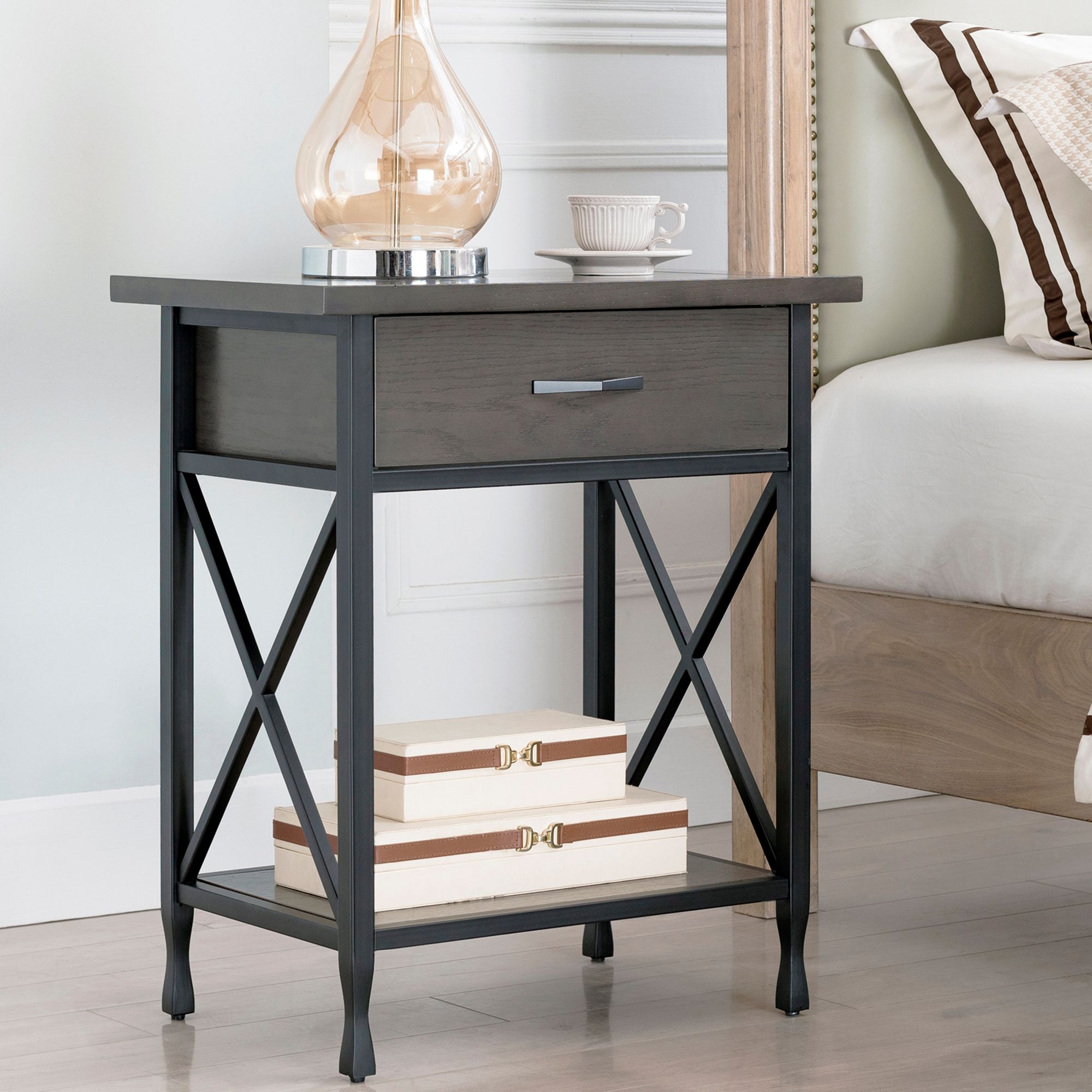 Task desk lamps are great for your study table or work desk as they focus light on a specific area. They're functional and provide a convenient place for you to place a lamp, set down your nighttime reading material, your remote control and your cup of warm milk. For bedrooms, the lighting is softer to set the right mood for relaxation or light reading. Grey nightstands & bedside tables : Top sellers most popular price low to high price high to low top rated products. ( 4.5) out of 5 stars. By stylecraft (5) antler 27.5 in. Free shipping* more like this lite source towton gray table lamp $ 226.00. ( 4.6) out of 5 stars. Dual usb table desk lamp, grey bedside nightstand lamp with 2 usb fast charging. 360 lighting farmhouse chic accent table lamps set of 2 beige washed linen drum shade for living room bedroom bedside nightstand. As easy addition, lamps help set the right ambiance for every type of room. 5% coupon applied at checkout.